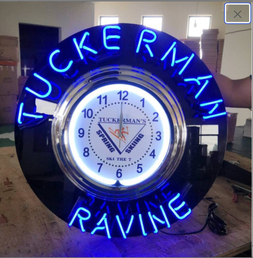 Tuckerman spring Skiing clock in the center. The clock is battery-operated. IL approved. Carefully packaged. You will have a